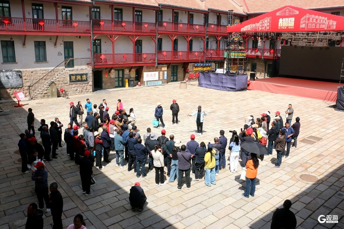 青岛日报社/观海新闻4月23日讯 五一将至,海风送暖,青岛持续“升温”,历史城区客流逐渐增多。红瓦绿树间,百年老街焕发出全新活力,各地游客慕名而来,大型旅游团接踵而至,百人大团徜徉街巷,打卡特色景致,邂逅老城风情。